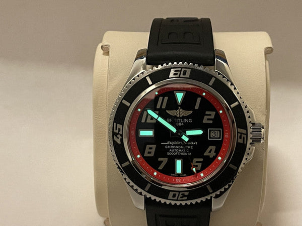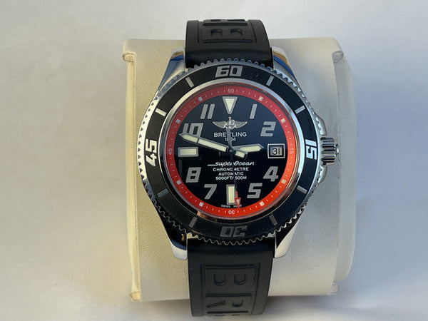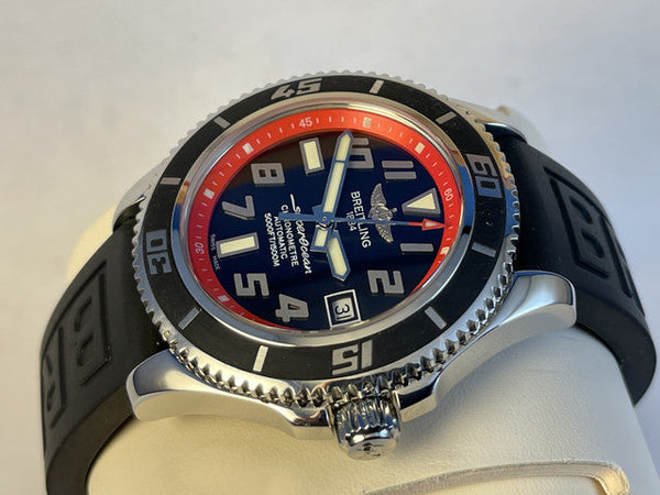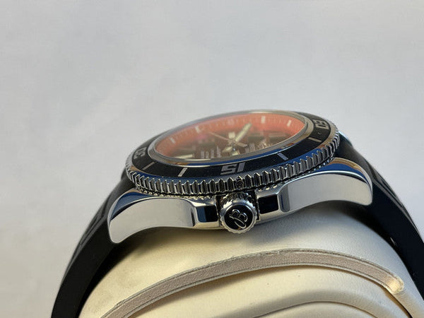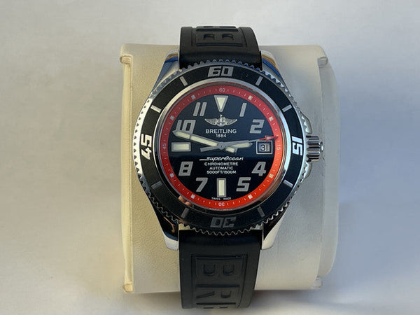 For sale is the robust and stylish Breitling Superocean 42, reference A17364. Designed for underwater explorers, this timepiece combines professional-grade dive features with a sleek and sporty design, perfect for both adventures and everyday wear.