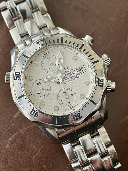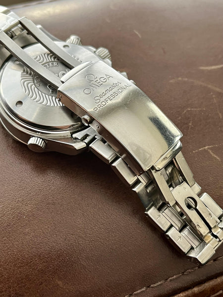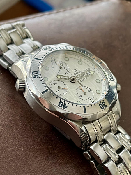 For sale is the Omega Seamaster Diver 300M Automatic Chronograph, a timeless classic that offers robust performance, versatile styling, and exceptional build quality. This model is a perfect choice for anyone looking for a professional-grade dive watch with chronograph functionality.