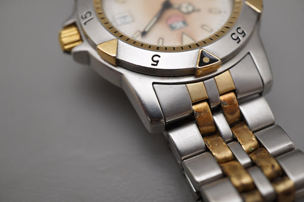 This TAG Heuer 1500 Series 955.713 is in great vintage condition, showing minimal signs of wear consistent with age. The case and bracelet have been professionally polished, and the movement has been tested for accuracy. A charming and reliable timepiece that evokes TAG Heuer’s classic dive watch heritage.